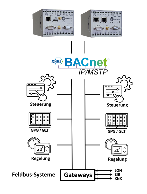 - Anschluss von bis zu 250 BACnet IP Geräten