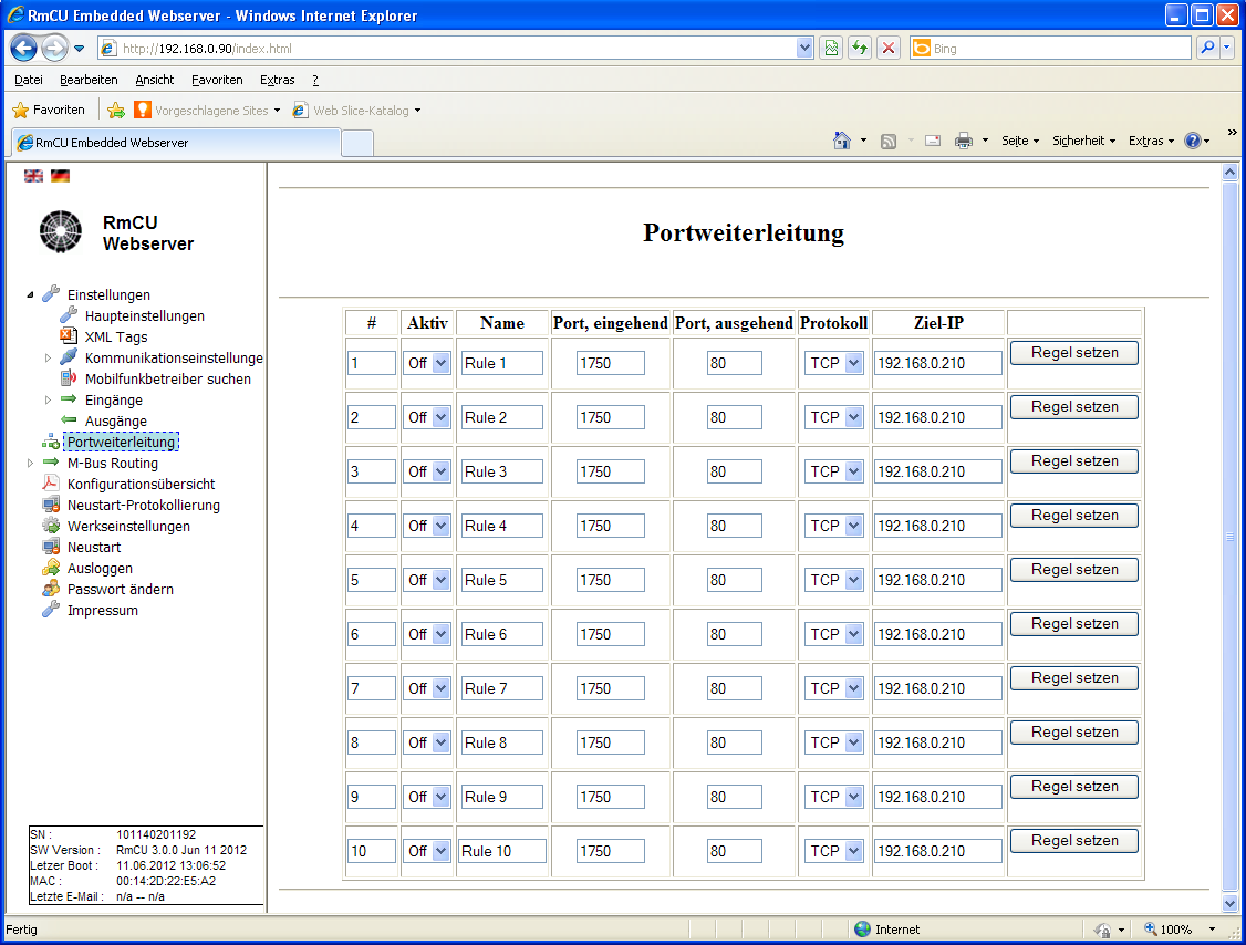 Die RmCU verfügt über die Möglichkeit, eine zweite Netzwerkschnittstelle per RJ45 zu nutzen und bietet damit optional zwei Ethernet-Anschlüsse anstelle des Mobilfunkmodems. Durch die integrierte Firewall können unsere Datenlogger und Multiprotokoll-Gateways sowohl im IT- als auch im OT-Umfeld eingesetzt werden. Dies ermöglicht eine physikalische Trennung zwischen dem Produktions- bzw. Zählernetzwerk und dem internen IT-Netz. Dank der klaren Trennung der beiden Netze durch die Firewall lassen sich erweiterte Netzwerkkonzepte realisieren, die sowohl Datensicherheit als auch Netzstabilität gewährleisten.