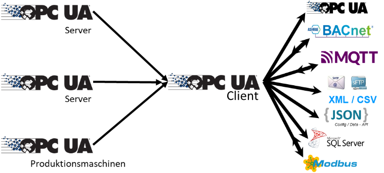 beliebigen OPC UA Servern ausgelesen werden.